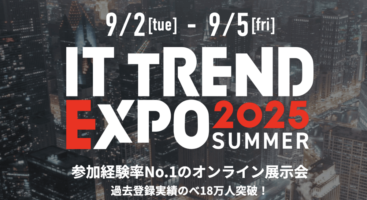 2025年9月2日(火)~5日(金)にて開催される「ITトレンドEXPO2025 Summer」は当然ですが、オンライン開催で日本各地から参加可能になっています。