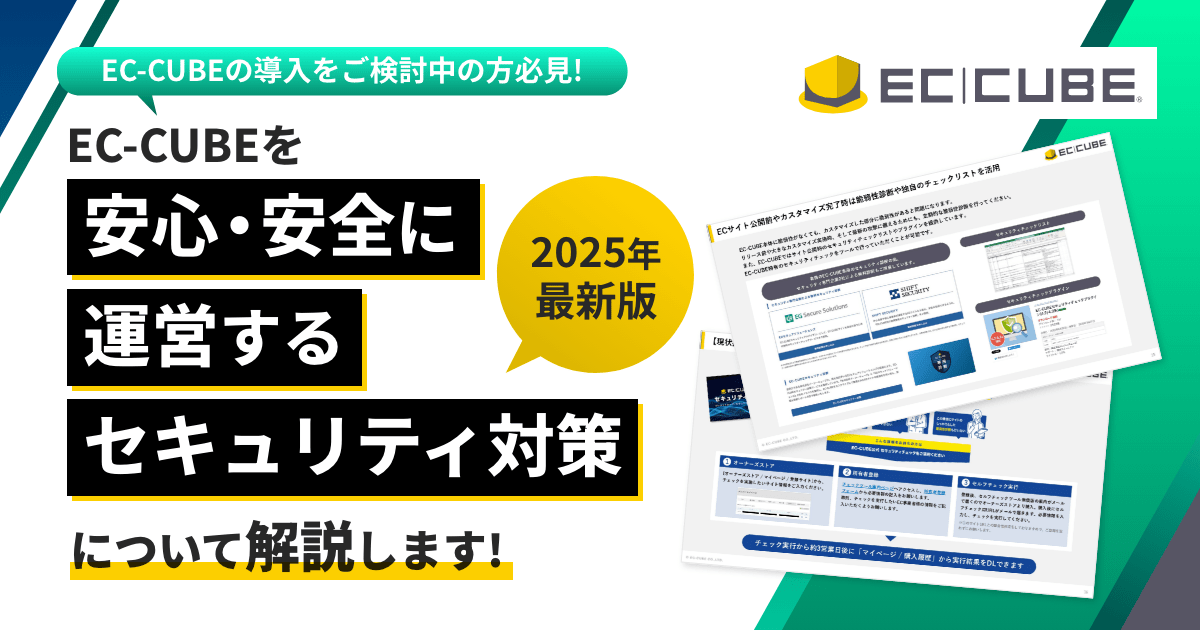 EC-CUBEを安全にご利用いただくためには、ご利用の環境にあわせて正しくセキュリティ対策されていることが重要です。安全にサイトを運営していただけるようセキュリティ対策用資料を公式から配布されていますので、該当ECがEC-CUBEの場合、必ずご確認ください。