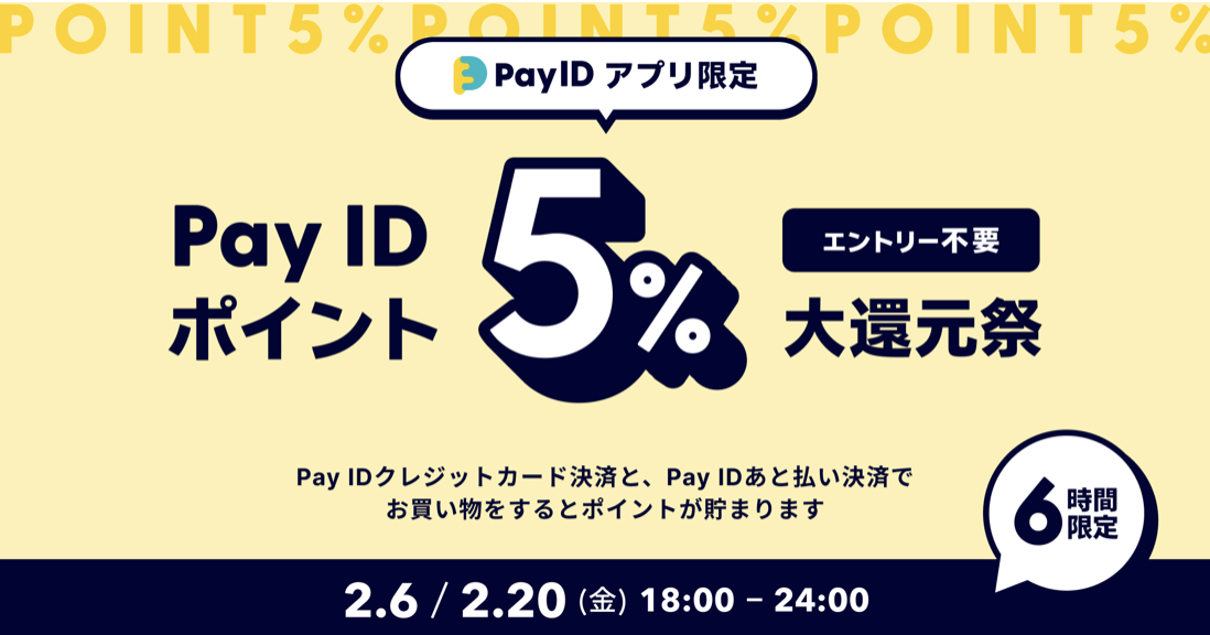 「Pay ID ポイント」5%還元(上限:1決済あたり30,000ポイント)